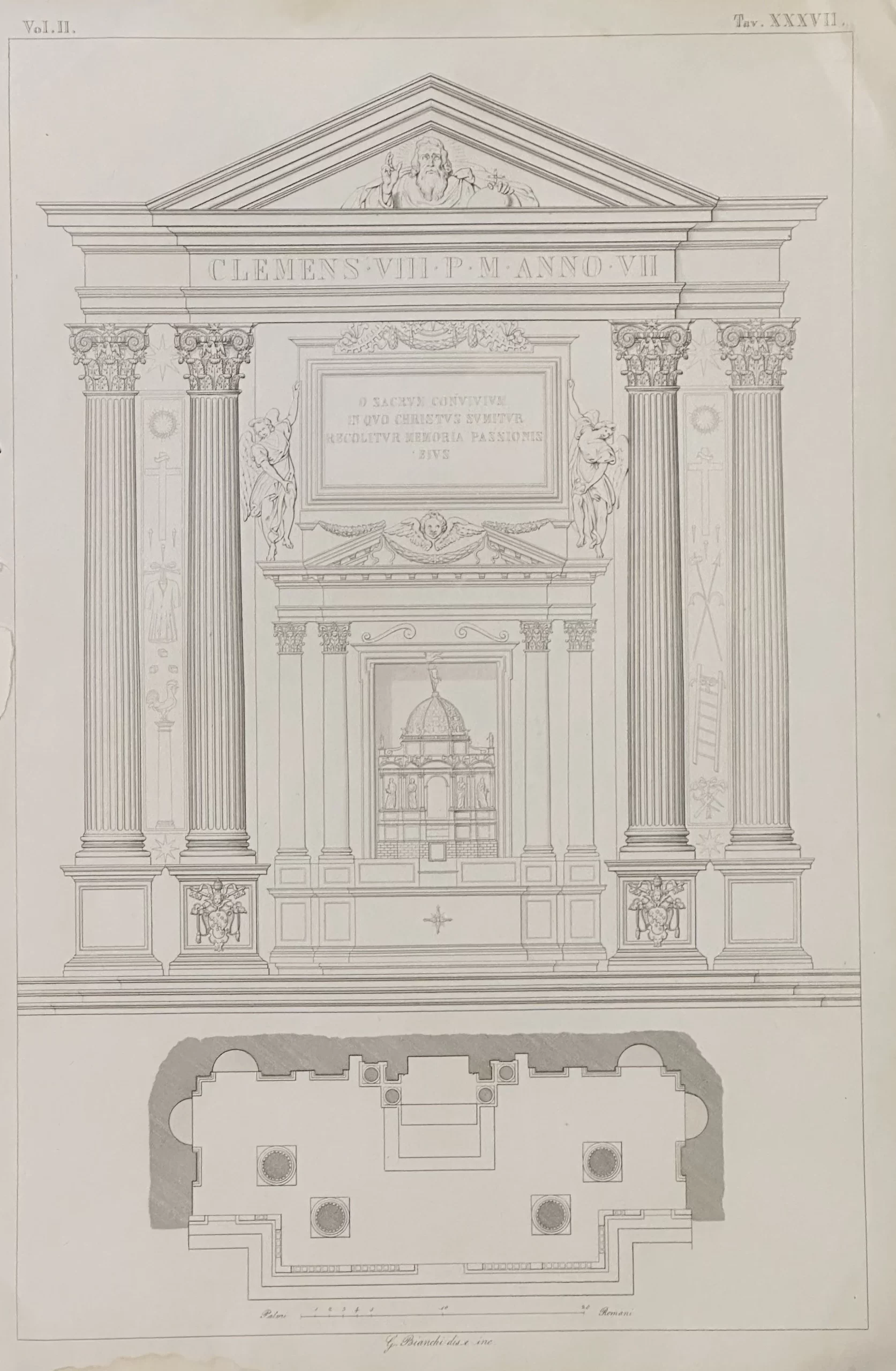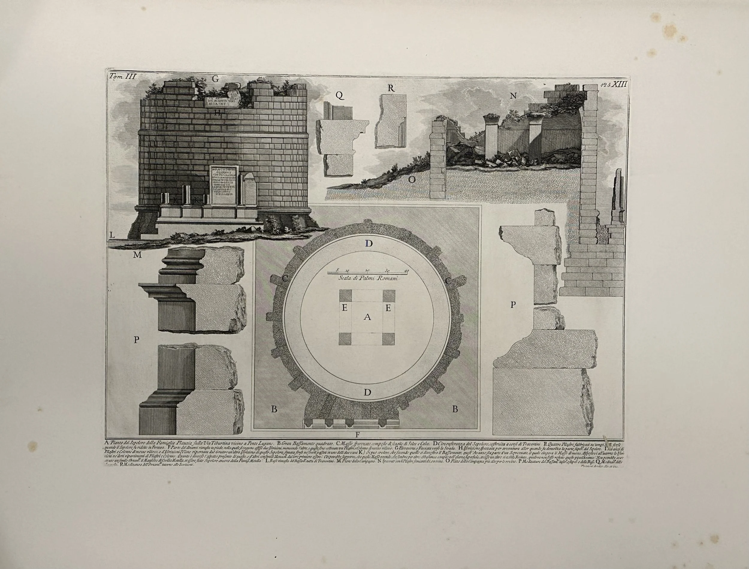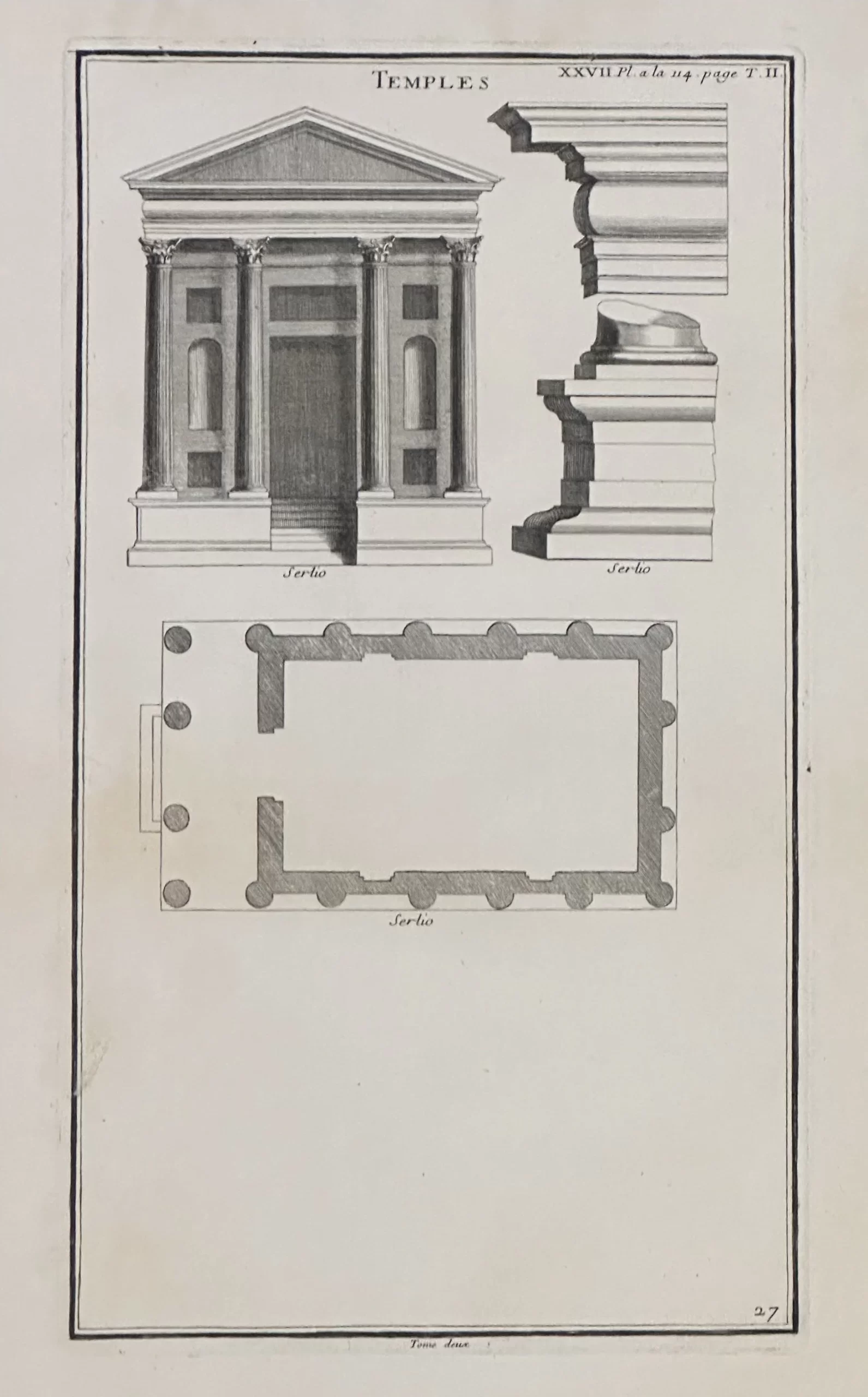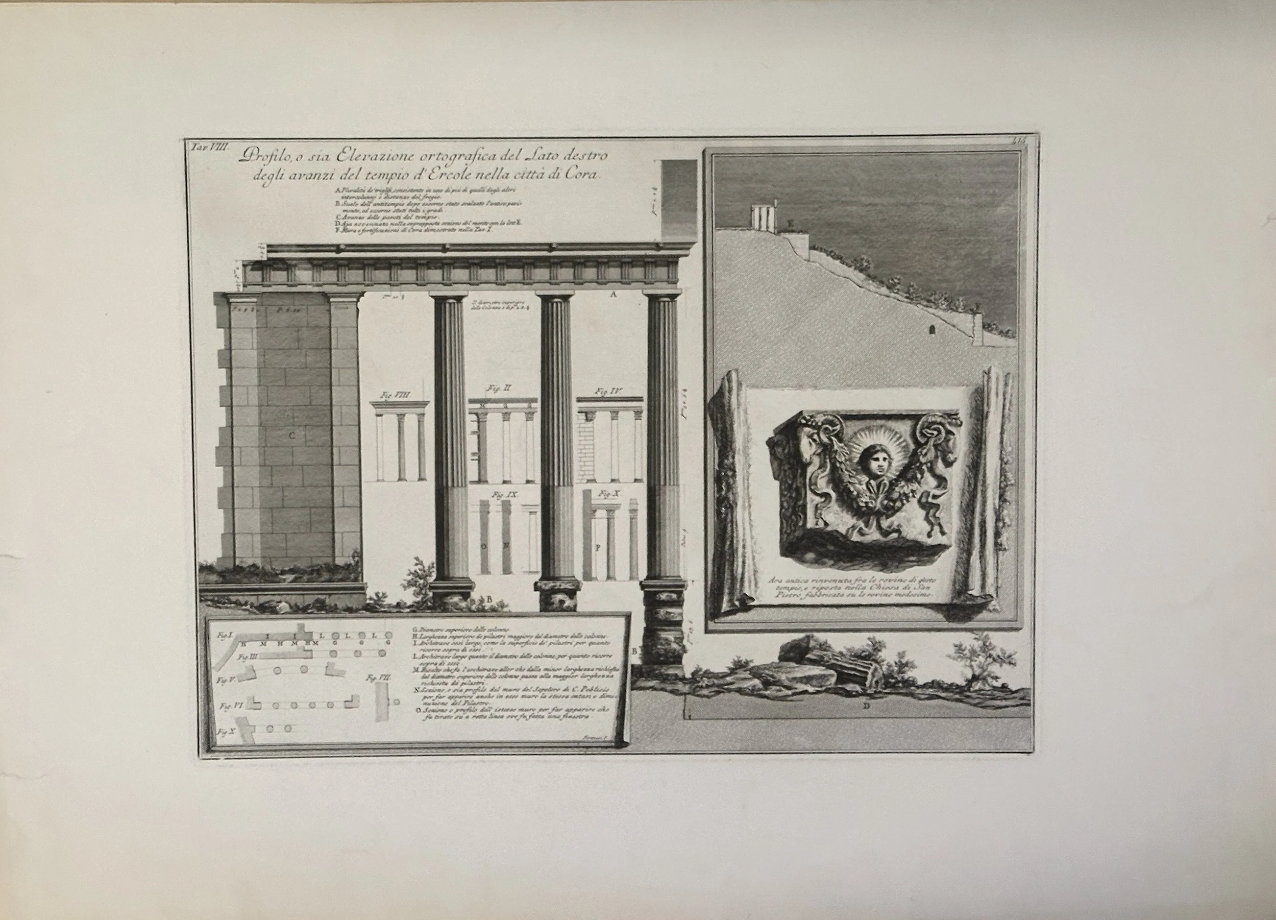 Profilo, o sia Elevazione ortografica del Sato destro degli aranzi del tempio d’Ercole nella citta di Cora.