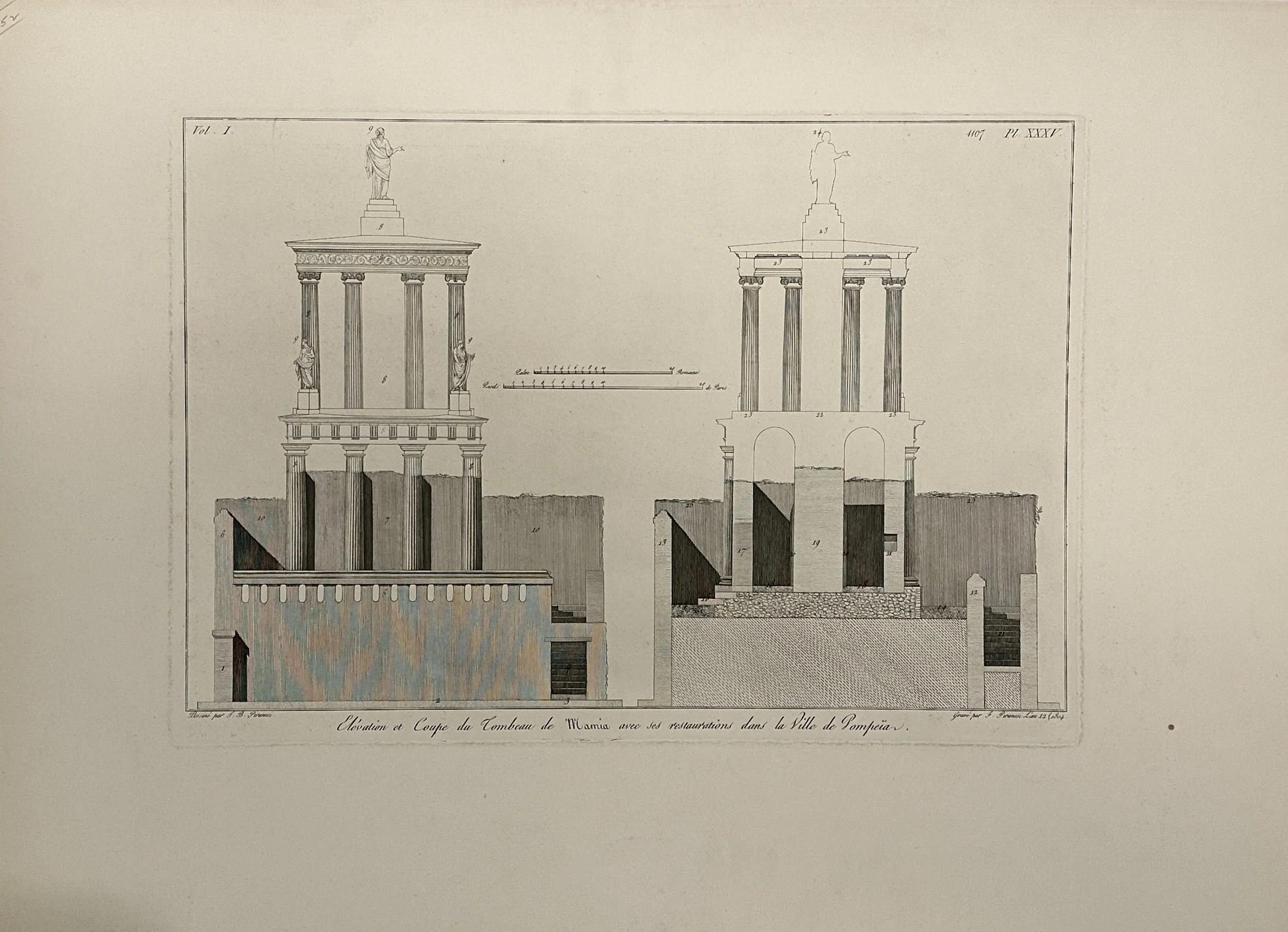 Elevation de Coupe du Tombeau de Mamia avec ses restaurations dans la Ville de Pompeïa